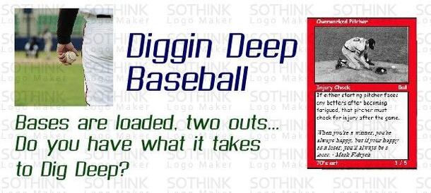 Welcome to the world of Diggin Deep Baseball. With this game, you should be able to re-create the game of baseball complete with all the strategy and decisions that the big league manager make on a daily basis. You set the rosters. You pick your rotation. You make the lineups. All of the game strategies are here. Do I steal a base? Do I pinch hit? Do I...