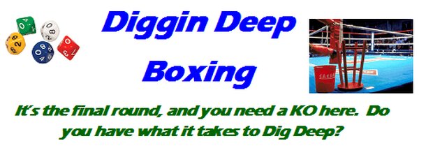 Welcome to the world of Diggin Deep Boxing!!! With Diggin Deep Boxing you can experience all the majesty and drama of boxing on the tabletop. Diggin Deep Boxing is a round by round simulation of the game of boxing, complete with everything you would find in a real life boxing ring. You might even find a few surprises as you would in an actual boxing match....