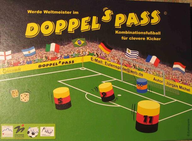 A dice driven soccer game where the rolls move your teammates into the best positions to score. "The teams are on the pitch and soon the finale will start. Which trainer will be the most successful in getting their players into good positions". Players alternate rolling a die and moving a player with the appropriate number. A goal is scored if you move one...