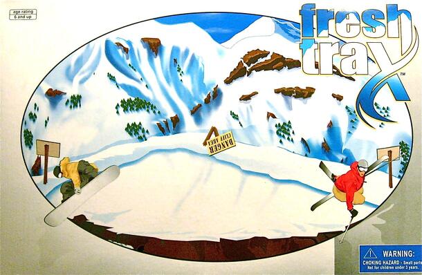 Fresh Trax is a light “roll and move” type card game with a 3-D board and a snowboarding theme. From the publisher’s web site: “Check out FreshTrax, the new board game from the makers of the HuckDoll. Take the lifts up, then ride through the trees, hike to higher ground or hit the terrain park. But be sure to collect a FreshTrax card on the way, cause you...