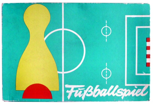 Objective: score most goals within a given time - acting/moving by die - red versus black team; active player (red) rolls the die and moves the ball along a matching (numbered) arrow to the next space; if ball ends on a red space player may roll again...; special spaces ('Aus' changes ball possession, '11' possible penalty...) and two keepers (may be moved...