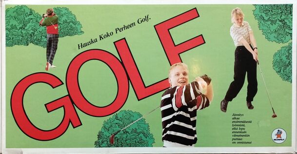 "Fun golf for the whole family. Tactics-Hazards-Excitement." This Nelospelit publication likely from the 1980's (old Nelospelit logo) is yet another attempt at simulating golf as a dice rolling game. The board depicting a 9-hole golf course is rather large, and can be played twice for a full 18-hole course. The set of dice consists of six regular d6 - one...