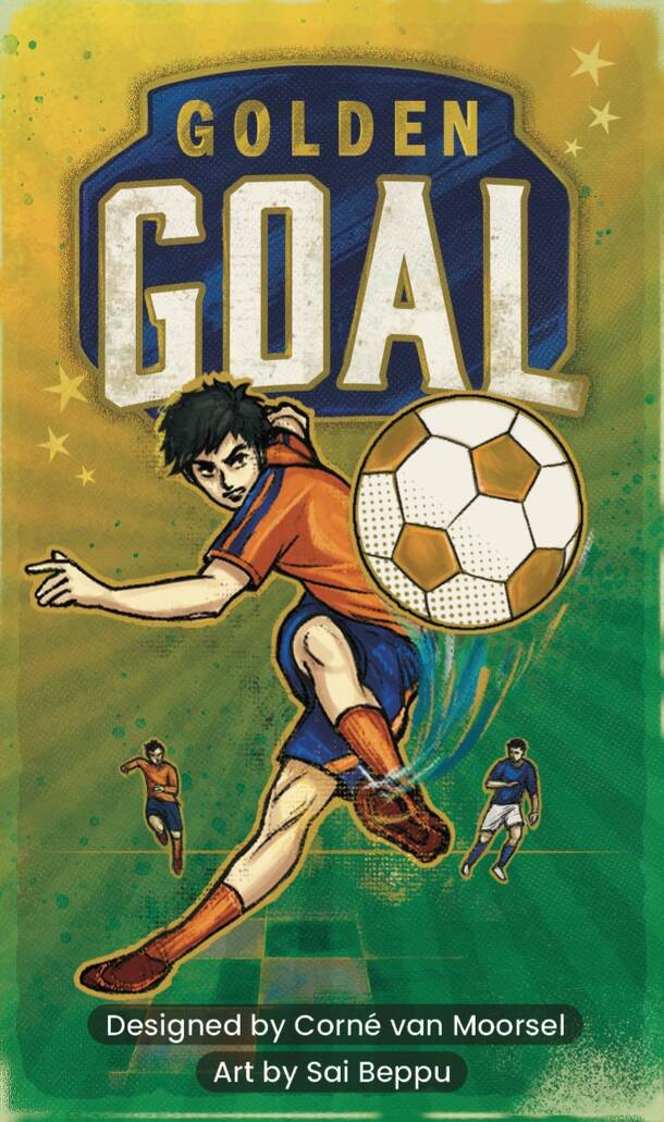 Golden Goal "simulates" a Soccer World ChampionShip in which each player is a country. A player is going to play twice against every opponent. A single match consists of a few throws of special dice (with 5 black sides and 1 ball side). In addition, one can play special cards (penalty, goalie, etc...) to modify the number of goals. This game is very...