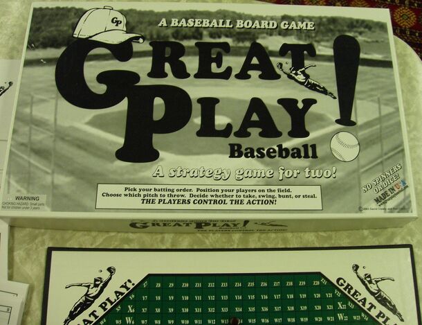 A baseball simulation game (not using actual players) with a 100-card deck for randomization. Defensive player positions players on the field and declares pitch to throw; offensive player turns over top card on deck; players match the batters hitting ability (lefty-righty; .100, .200, or .300 hitter) with pitch. Can be strike, ball, or ball hit into play...