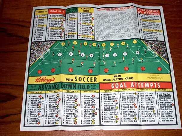 From the rules page: "If you don't know or understand soccer, this game will teach you. If you do know soccer, this game will be a challenge to your knowledge and ability." This is a one-page insert that came with a Kellogg's product (pop-tarts, I believe) and, despite the name of the publisher, is not a computer game. Play results are determined by...