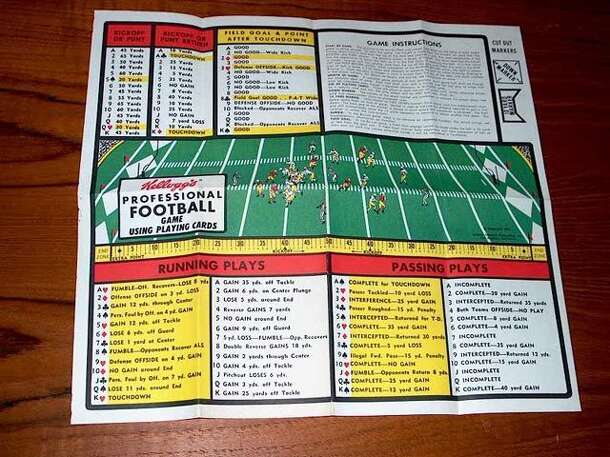 From the rules page: "If you don't know or understand football, this game will teach you. If you do know football, this game will be a challenge to your knowledge and ability." This is a one-page insert that came with a Kellogg's product (Pop-Tarts, I believe) and, despite the name of the publisher, is not a computer game. Play results are determined by...