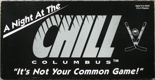 As the box proudly proclaims: "It's Not Your Common Game!" This game was a promotional item for the Columbus Chill of the East Coast Hockey League. Intro from the rules: "Your group of three Chill Fans are at the Chill game. They were so excited to get to the Coliseum that they rushed out of the house and forgot to eat dinner. Object of the game is to move...