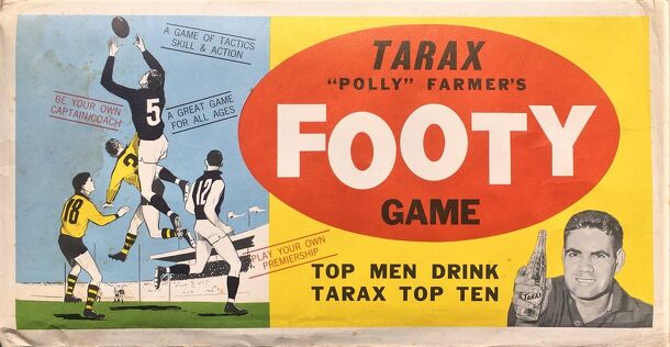 This vintage game from Australia is a simulation of Australian football. Two players move a cardboard playing piece that represents a football around an oval shaped arena (ground) that has numbered spaces signifying the players men. The object of the game is to move the football from one number to the next by the roll of a dice, until your team reaches a...