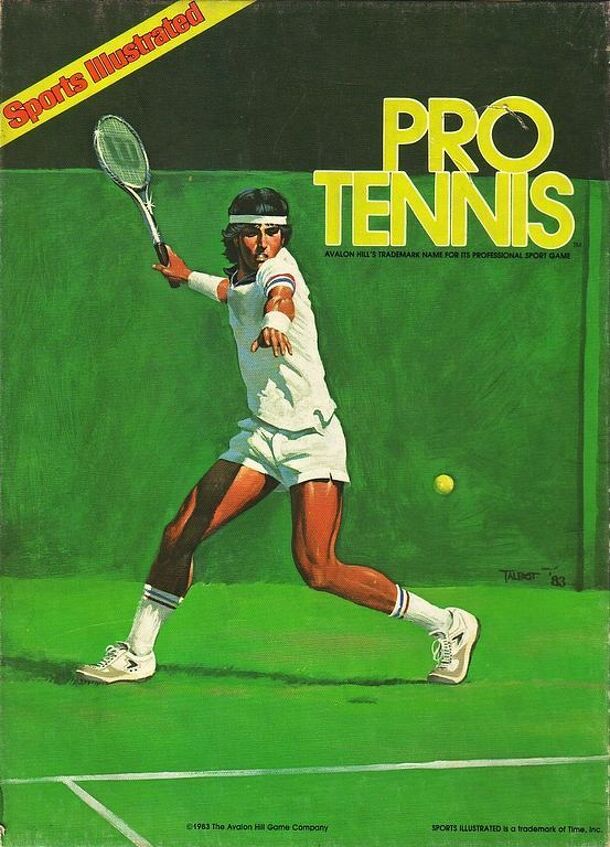 Pro Tennis simulates tennis matches in the early 1980's, the era of Jimmy Connors, John McEnroe, Martina Navritolova and Chris Evert. Included are cards for 50 men and 50 women professionals. Each card has a column for "Serve", "Serve Return", "Volley" and "Special". Play consists of rolling dice (two white dice, plus a red die that isn't added to the...