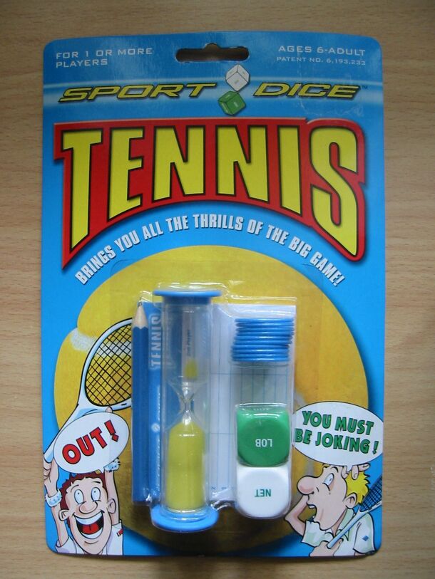 Simple dice game simulating a tennis match. The serving player uses the white die and the receiving player uses the green die. Players take turns rolling their die until a point is scored either way. Two kinds of matches can be played: either play for the best of six games, or each player tries to score as many points as possible in a fixed time (using the...