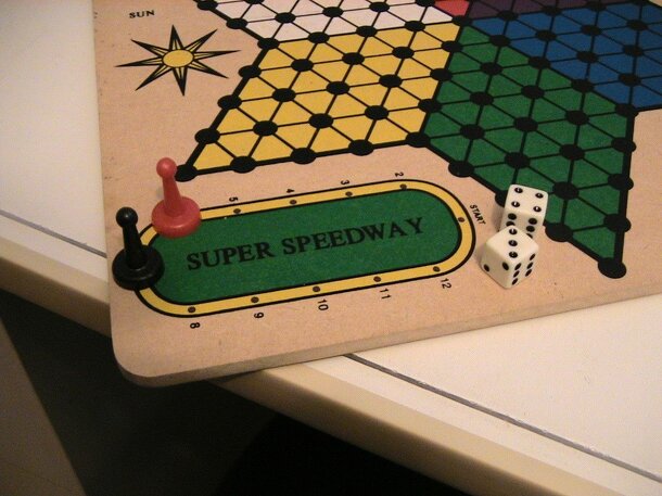 Roll and move racing game endorsed by Richard Petty. Players move their cars around the track for a predetermined number of laps, collecting "Petty Cash" (as well as Points and Laps). There are Pit, Wreck, and Pass cards that confer bonuses and penalties. The ultimate goal is to have the most cash at the end of the game, not necessarily to win the race...