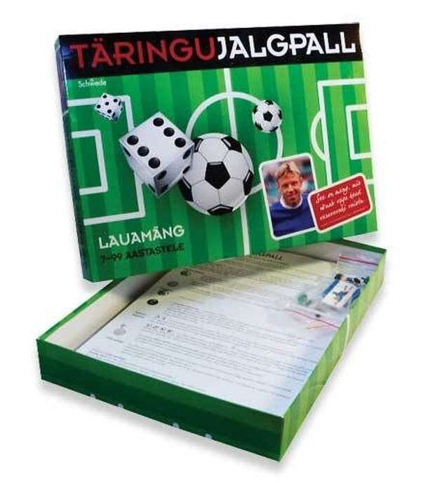 Soccer game that uses two different dice - one classical and one shaped like a soccer ball (metal ball inside that makes it possible to roll a number). It is a game of luck and statistics. Also there is a goalie figure and a score cards. Its about change. Try hitting it in to the corner from a half a court, be good with luck and dice. The closer you are...