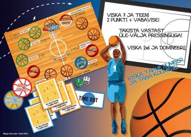 From the designer website: "Tee Skoori" is a basketball simulation that lasts about 30 minutes. For playing you use two dice for deciding an attack. Throwing one dice you decide if you go below the basket, or the player may run after one pass into the fast attack. Also you have many chances to get the long distance throw. For very lucky shots you can earn...