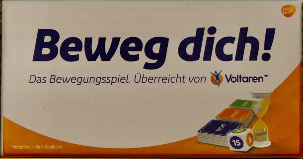 The game consists of a die, an hour glass and 36 cards: 12 for sports (blue), leisure (orange) and nature (green) each. The oldest player starts and roles a die. The color of the die decides the color of the card deck to select from. The player has to do the exercise described on the card for the number of times the die gives. If the player does that...