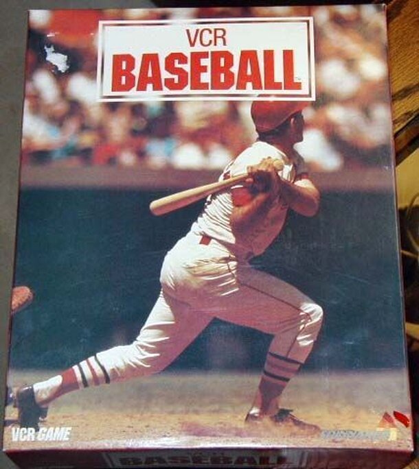 From the back of the box: VCR Baseball is the exciting baseball strategy game that can turn an ordinary afternoon into a thrilling day at the ballpark. Become an actual player and see the outcome of your hits on TV as you watch the video tape containing footage of professional slugging action. Home runs, double plays, triples, fielding errors...