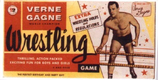 Verne Gagne Wrestling is one of 6 games that were included in a grouping of games from the Gardner Company. All games came in the same box under the title of Big 6 Sports Games. This is a simple spin and find the results game. Also included in the box with this game was; Mickey Mantle's Big League Baseball, All Star Football, Gardner's Championship Golf...