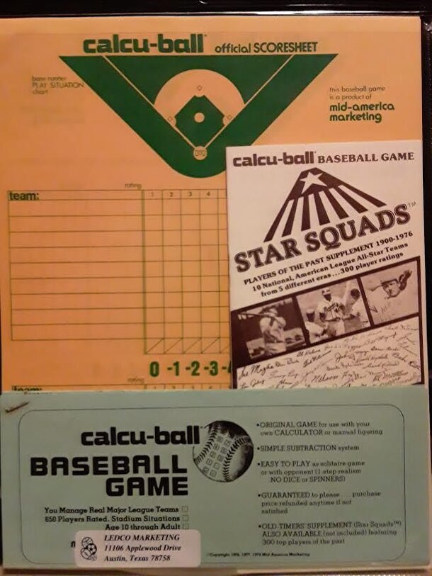 A very simple baseball simulation game, with only the 1976 or 1977 current teams rated based on previous season performances.. A calculator was used and players came on roster sheets, instead of individual cards. There are no dice, markers, spinners, expensive play situation boards to get lost, everything came in compact packaging: instructions...