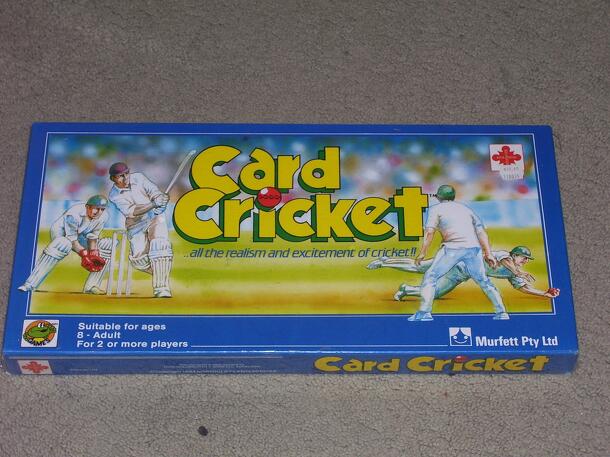 From the rules: Card Cricket was the result of 2 1/1 years' painstaking research into the statistical records of cricket matches going back several years. But it had its lighter side, too. It involved many pleasant days spent watching actual matches - recording every single detail of the games so that Card Cricket would be as authentic as possible....