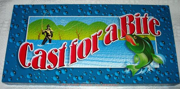 Contents 390 Fish Cards 130 Bait Cards 60 Snag Cards 2 Spot Dice 1 Fish Size Dice Electronic Count Down Timer (Batteries supplied) 6 Coloured Playing Pieces Board Rules From the back of the box: "Cast for a Bite combines all the anticipation, skill and luck of competitive fishing, allowing players to experience the excitement and sense of achievement when...