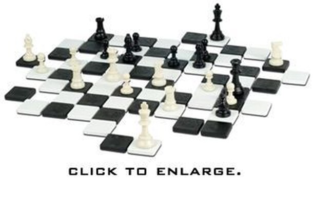 Beyond Chess is a chess variant that uses a modular gameboard that actually shifts during play. Rather than playing on an 8×8 grid, the game is played on 64 movable squares. Players can move pieces as well as game squares, causing an ever changing landscape of movement possibilities. Furthermore, it is possible to entirely isolate an opponent's playing...