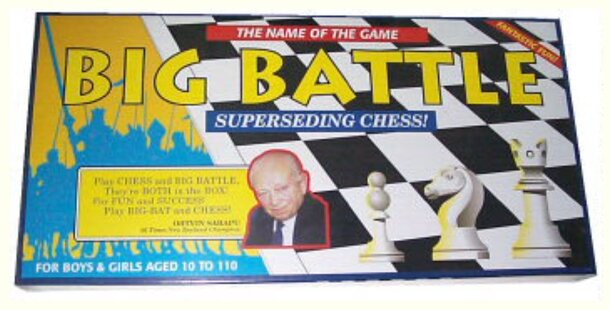 Described by the Publisher/Designer: M K Morrison developed Big Battle over a number of years. He fine tuned it by play testing against an international chess master in New Zealand. Big Battle is a chess variant played on a 10 by 10 chess board. It has two new pieces called Princes which combine the powers of the chess knight and the Big Battle Queen. The...