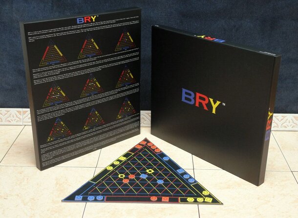 A board game with the strategy of chess and the simplicity of checkers. Players have 3 colors to choose from: blue, red & yellow (BRY). Each player controls 9 pieces of their color: 3 square pieces, 3 hex pieces and 3 round pieces. Printed on each piece is the shape of the kind of opponents’ piece it can capture: square, hex or round. Each player has one...
