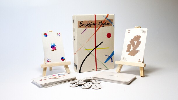 Brushstroke Mayhem is a 2–5 player card game of chaotic creativity. Easy to learn, fun to master. Players build abstract artworks while outmaneuvering each other in a strategic mess of color and control. Players create several canvases, the shared and personal ones. They have paintings in hand which they are eligible to complete if the patterns in the...