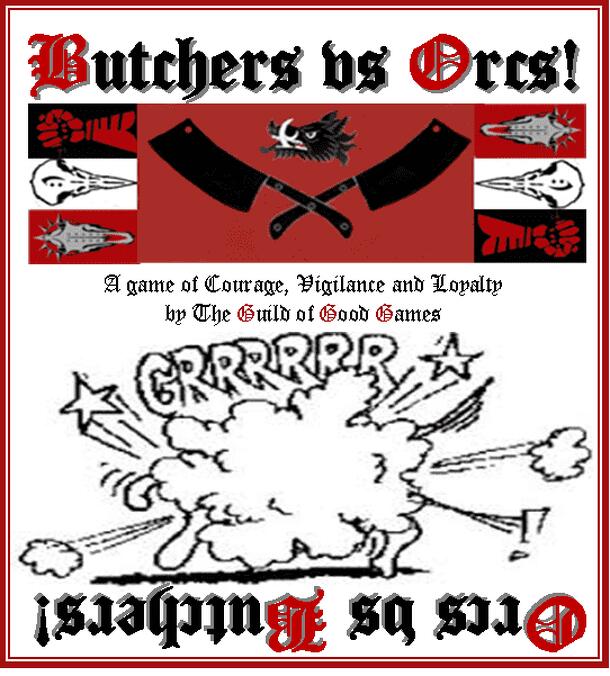 Butchers vs Orcs! is a two player roll and move game. The theme of the game is based on in-character rivalry between the Butchers Guild and the Imperial Orcs within the Live-Role Playing world of Empire by Profound Decisions. Players roll dice to move their pieces (representing the Butchers and the Orcs respectively) in opposite directions along a track on...