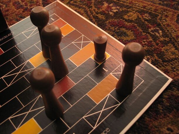 A desert themed abstract played on a 7x7 board. Players try to move the pieces (Caravaneers) using two types of movement choices from their start position on the "North" and "West" edges of the board through the desert and safely to their Caravanserai located on either the "East" edge of the board or the "South" edge of the board. The player who has...