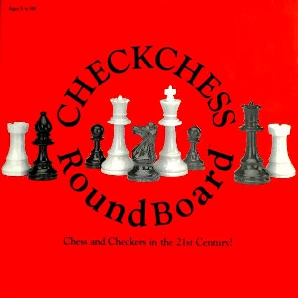 CHECKCHESS RoundBoard contains standard sets of chessmen and checkers, but as the name implies the real star is the game board. The circular board consists of eight rings of eight spaces each. Each ring corresponds to one of the eight ranks on a standard chessboard, and each radially-aligned group of spaces corresponds to a file. (They're even labeled 1-8...