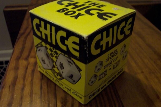 "Play Chancy Chess with Chice" Chice is a chess variant that uses two dice (called chice just one is a "chi"). The dice have faces with various chess pieces. After each player makes an opening move, they each roll both chice on their turn. You must move one of your chess pieces as shown on the chice (your choice of which). No legal move? You lose your...