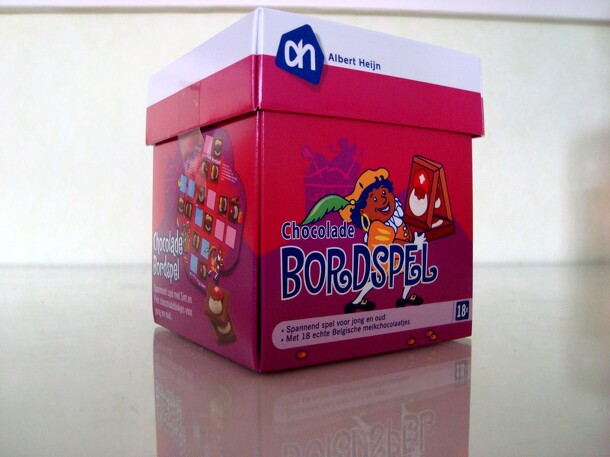 The board has 22 square spaces in two colors. Each player places chocolates on the spaces in his/her color. They can use the chocolates of 'Sinterklaas' and 'Zwarte Piet' together. every turn a player moves a chocolate to an empty space. When you jump over another chocolate, the chocolate is removed from the board. It's allowed to jump over chocolates on...