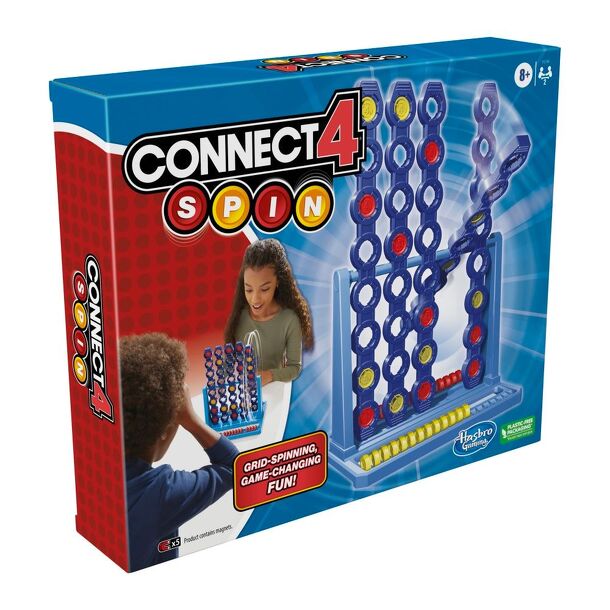 Grid-spinning, game-changing fun! A strategic game of weights and balances! Place your disc, then spin to line 'em up! The classic game of Connect 4 returns with a new, tactical, kinetic variation. Each column spins separately, and the more checkers are added, the more likely it is that gravity will take over and spin the column upside down! Place a disc...