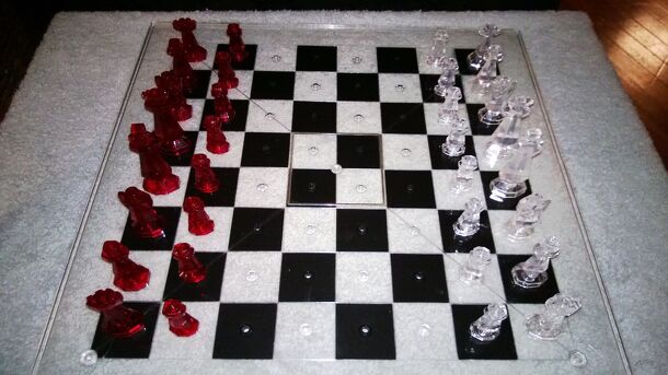 From the box: "An introduction to an ageless game with a 20th century pace. The game of chess is simple. It is difficult only if you make it so. And Crescendo Chess is as simple as regular chess. It is played by the same rules. The chess men move the same. A full set of rules and instructions that completely cover Crescendo Chess are included. After...
