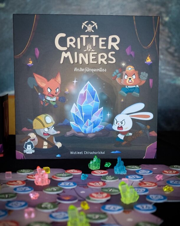 In this abstract strategy game each player has 4 pawns, each one in a different corner of a game board depicting a jungle and divided in squares. On the game board are various S- and L-shaped tiles with an illustration of a crocodile on them, that act as barriers. Every turn a player gets to move between 0 and 3 crocodile tiles, decided by a special oblong...