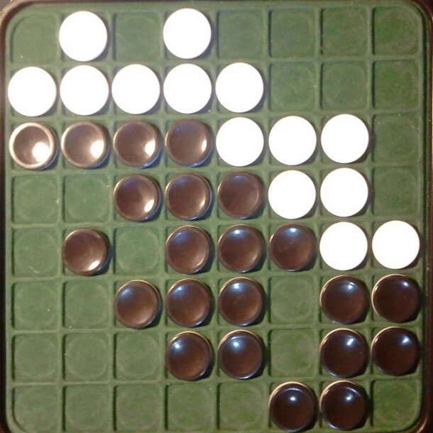A combinatorial abstract strategy game played on a square grid. Players alternate placing stones on empty spaces. Capture diagonally sandwiched enemy stones (custodian capture), flipping them to your color. After the board is full, whoever has the longest straight "bar" in their color - horizontal for white, vertical for black - wins. Ties cascade to...