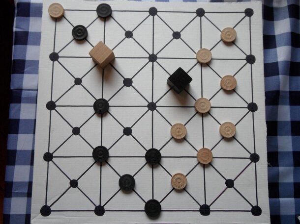 This game from Swedish Lappland represents the struggle between landowners and the tribal Sami ( Lapps ). The Sami king, prince and warriors face off against the landowner, his son and tenant farmers. The game is won by a player when his opponent loses all their pieces, cannot make a legal move, or resigns; a draw can be arrived at by mutual agreement or...