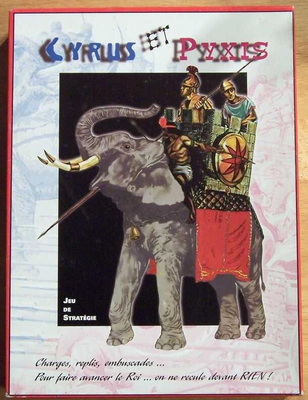 Cyrus et Pyxis is a highly abstract wargame, or an abstract strategy game with a war theme, depending on your point of view. The two sides are Persians and Greeks, although "Pyxis" is not the name of an actual Greek leader (it's a small pottery box). Each side has identical armies of 20 units - 10 infantry, 2 each of archers, cavalry, elephants, and...