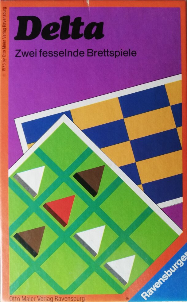 Delta, created by Swiss chess problem composer Erich Brunner, comes with two small boards (one is 5x5 rectangles, the other is 6x6 squares), nine triangular pieces in two colors, and one extra piece in a third color. In Delta, after entering their initial pieces by a free placement, players alternate moving pieces of their own color on the 5x5 board at...
