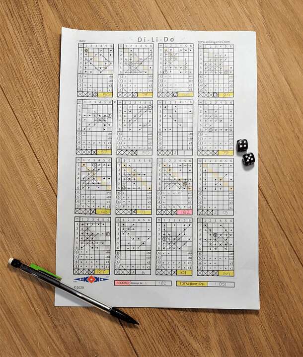 Di-Li-Do is an IDEAL GAME TO PLAY ALONE. After your eyes are tired from any computer / mobilephone / TV / smartphone etc - screen - it is great to spend time playing just with a piece of paper, pencil and 2 (d6) dice. Also you can organize a tournament for any amount of players and for any amount of time. To start you need to download a score sheet and it...