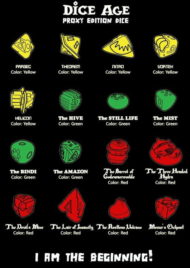 Dice Age is a game of unbalanced, figurative, and toyish collectible dice which are both cool to look at and fun to roll! They are utilized in a game of strategy and risk-taking with simple but engaging rules. On his turn, a player rolls one of his dice, with the goal of never overshooting the last number rolled, or he loses all the dice he rolled in the...