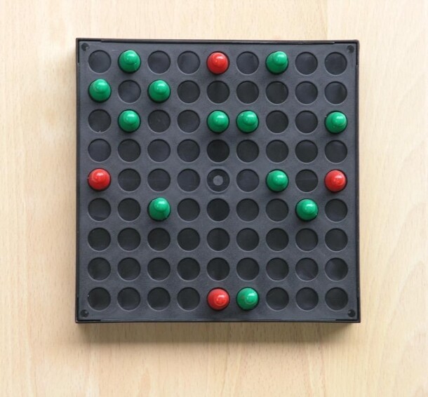 A fast strategy and tactics dice game for 2–4 players. The game comprises 36 dice than can be placed in a 6×6 grid on a playing board. Each player considers the outer row of six dice which he is facing (his 'home row') and will try that either a) all six dice show the same number, or b) the dice be placed in ascending (1-2-…-6) or descending (6-5-…-1)...