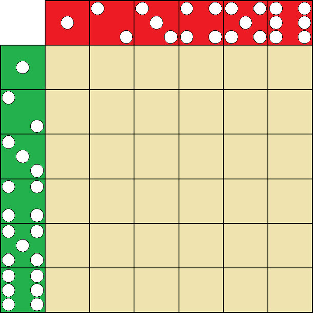 Dice Dodge is a dice game related to those in the jeopardy family, which includes Pig and Farkle. However, instead of the choices being "keep rolling" or "stop", one must choose whether to roll along a column, row, or across the entire board in order to maximize their chances of winning. Gameplay involves tossing two dice and marking the space on the board...