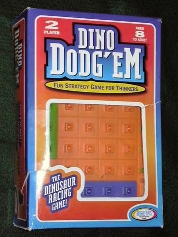 Each player starts with 3 dinosaurs on the outside of a 4x4 grid. The object of the game is to be the first player to move all 3 of his dinosaurs off the the other side of the grid. There are simple rules for movement including dinos cannot move diagonally, dinos cannot jump over other dinos, and dinos cannot move into opponents starting area. Blocking the...