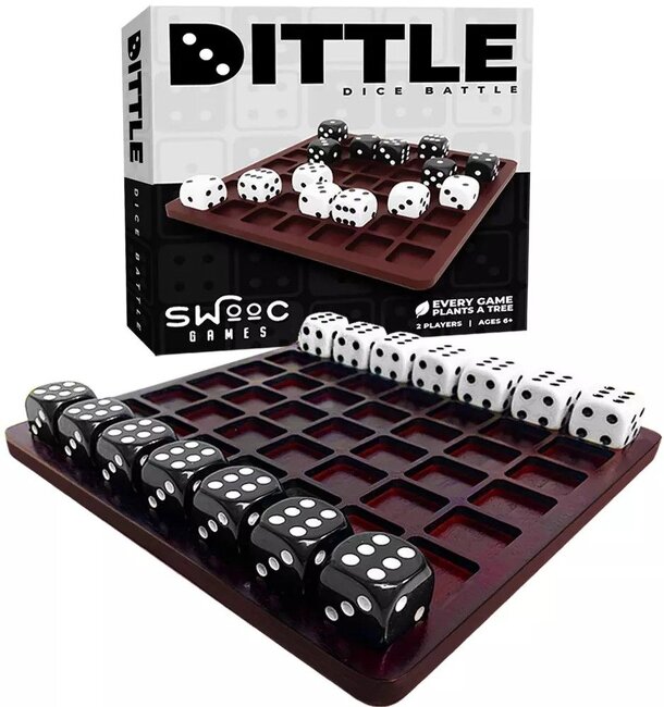 “The ultimate dice battle game.” Dittle is a simple and strategic new Dice battling game for kids and adults. Get your dice to the other side by rolling and jumping your enemy. When one player gets all seven dice to the other side, the game is over. But getting to the other side is only half of the battle! Add up the face value of all dice that have...