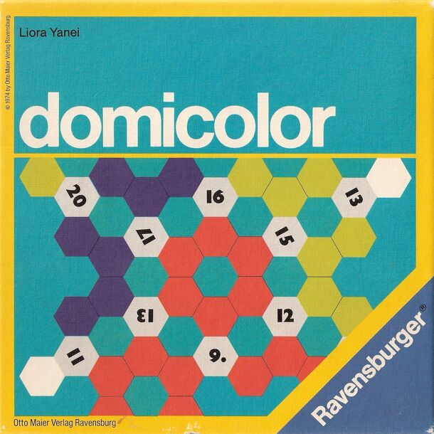 Domino variant with colors and special tiles. Aim of the game Scoring as low as possible by getting rid of tiles with high values. The tiles The game consists of 70 cardboard tiles with an unusual shape: 3 colored hexagons are arranged around a central hexagon that has a number printed on it. There are 8 different colours, and each colour is assigned a...