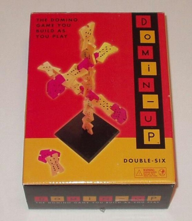 "The domino game you build as you play." This unique set of interlocking stackable dominoes includes a wooden board, 28 wooden dominoes, and a cloth storage bag. Player build up from the board using conventional domino strategy as the stack branches out when a double is played. Designed for ages 3 and older with safe, non-toxic wooden parts. Eureka Studios...