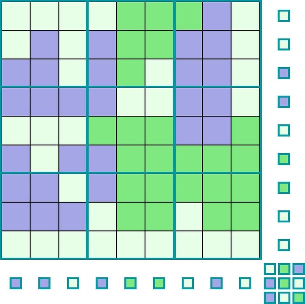 The game is played on a 6x6 board which is divided into 9 2x2 squares. On these, tiles are placed which have numbers 1-6 or are empty. One side is white, the other black. The two players take turn placing the tiles which have to connect to other tiles of their color and have to fit into the rows and columns sudoku-style. The aim is to fill as many rows...