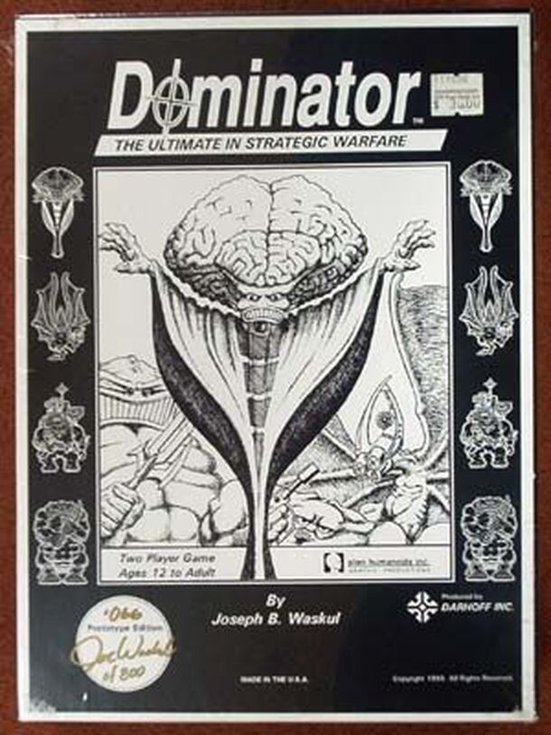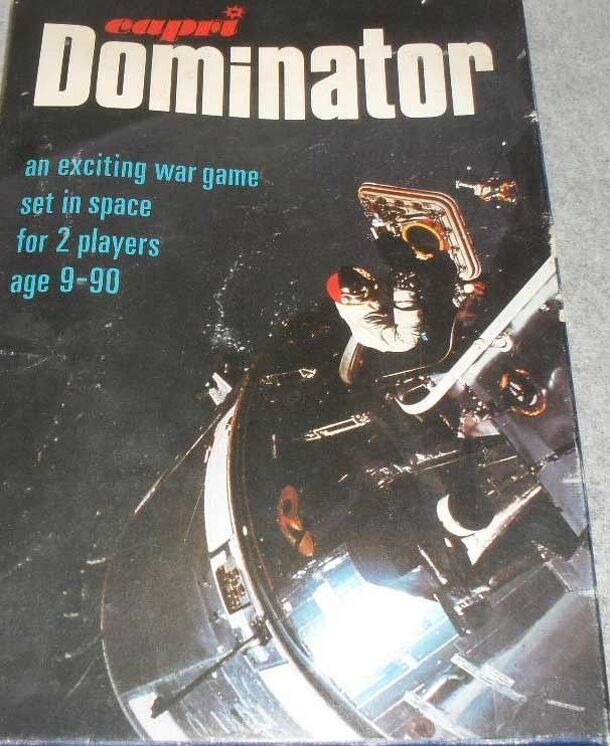 From the box: "An exciting war game set in space for 2 players age 9 - 90." From the rules: "Dominator is a war between two Battle Fleets for space domination. Each player commands a fleet which consists of a Flagship and fourteen War Craft. The object of the game is to manoeuvre the War Craft to capture the opponents Flagship. In each Battlefleet there...