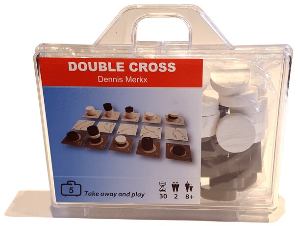 The object of Double Cross is to be the first player to position five marbles in a row, either vertically, horizobtally, or diagonally. Place the larger cross in the center of the table. Each arm should point to one of the players. Each players will play his marbles on the arm closest to him. Put the smaller cross on top of the larger cross. Each player...